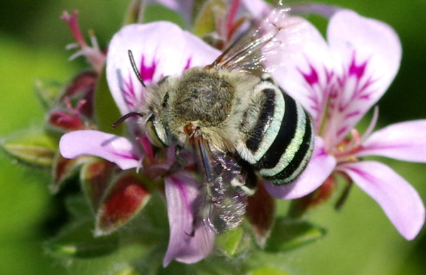 Alkaline or Native Sweat Bee – Lasioglossum spp. Like most native bees these are solitary but they dig communal burrows in clay soils. They are attracted to sweat and feed on native and exotic flowers.